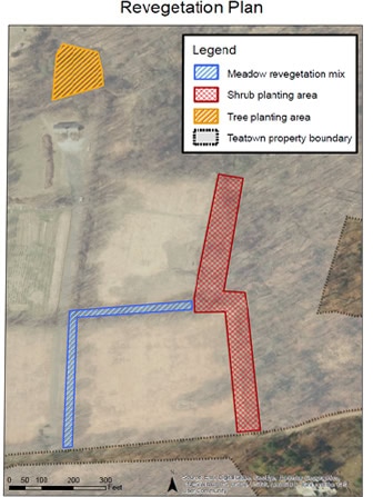 In addition to hedgerow work, this project also includes an altered mowing plan which will be adjusted around the breeding bird season to reduce nest disturbance. Several planting projects will take place to increase the biodiversity of meadow plants, creating transitions from the fields into the forest edges, and tree-planting will reforest a nearby canopy gap. This project was funded in part by a grant through the National Resource Conservation Service (NRCS), and our yearly operating budget.