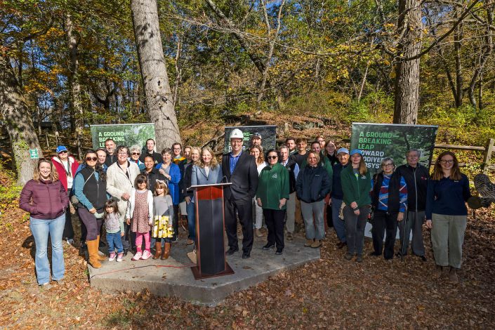The ceremony, held on Thursday, October 9 at 3 PM, featured remarks from Kevin Carter, Teatown’s Executive Director; Marcia Saunders, Chair of Teatown’s Board of Trustees; Westchester County Executive Ken Jenkins; New York State Senator Peter Harckham (40th District); Assembly Member Dana Levenberg (95th District); Assembly Member Matt Slater (94th District); Eric Bunge, FAIA, and Amanda Morgan, AIA, of nARCHITECTS; and Gail Wittwer-Laird of Starr Whitehouse Landscape Architects and Planners.